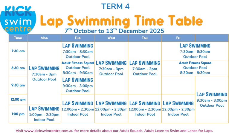 At KICK Swim Centre we have programs & booked sessions to cater to a broad range of fitness level, age and activity type!